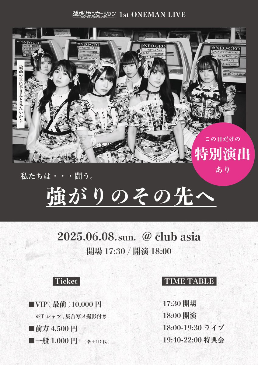料金:VIP(最前)10,000円 / 前方4,500円 / 一般1,000円 / 当日+500円 (各+1D)