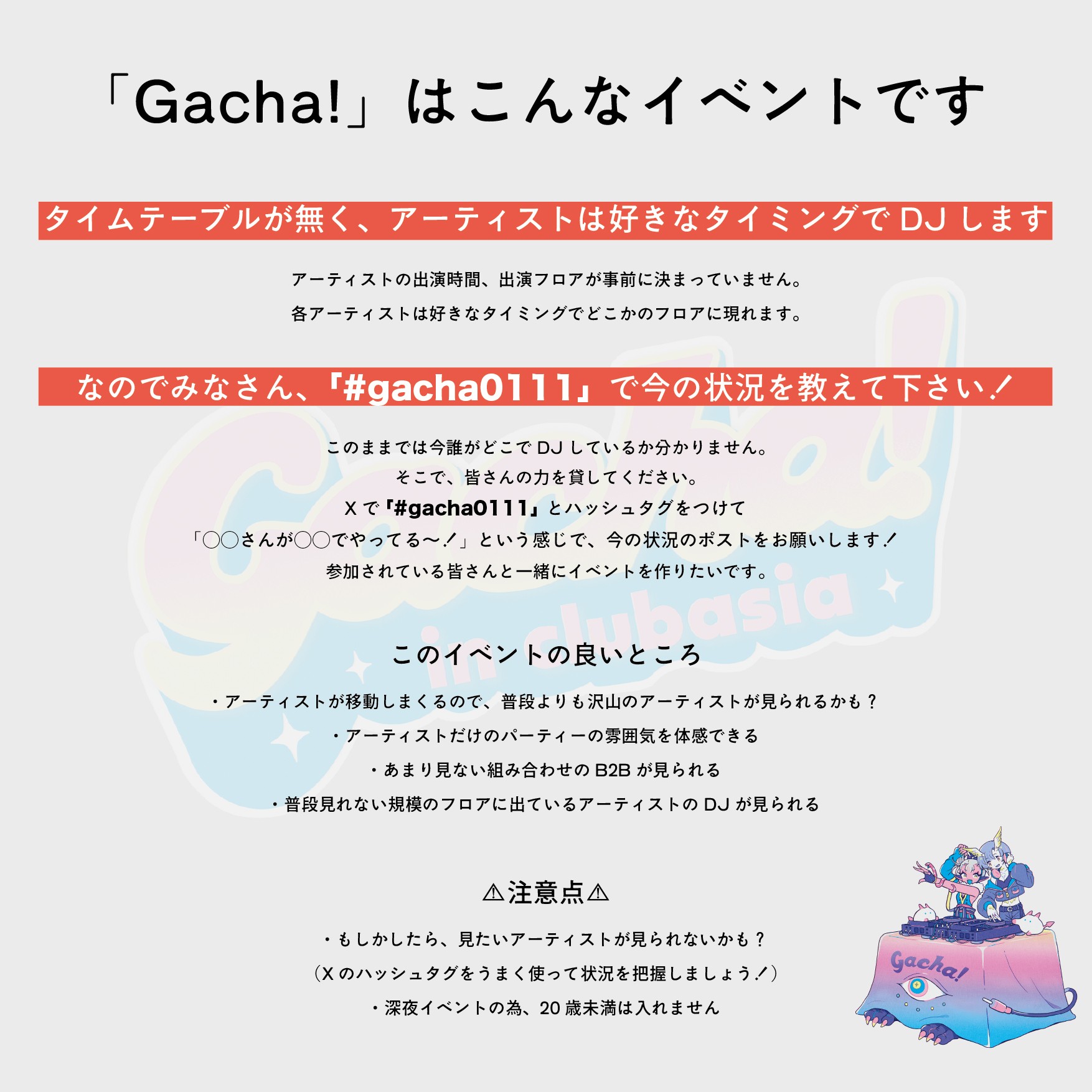 ・深夜イベントにつき、20歳未満の方は入場できません。