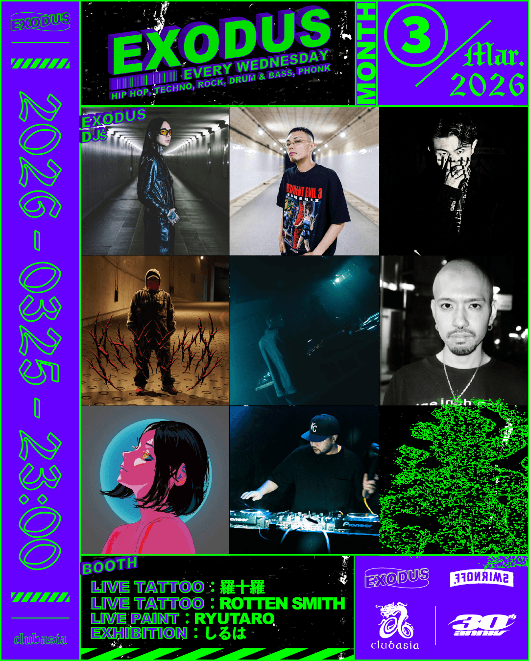 30周年を迎え空間とSOUNDが強化された、新たなclubasia 3月の"EXODUS"は要チェック。